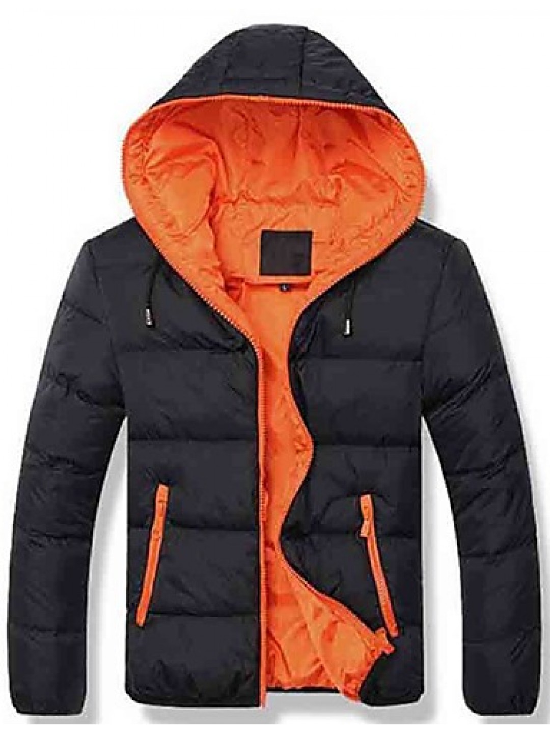 Men's Regular Warm Slim Plus Size Down Coat,Color Block Long Sleeve